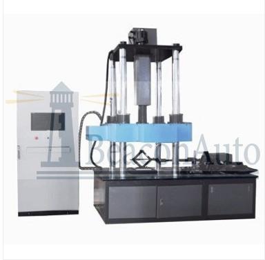 轎車千斤頂三軸試驗(yàn)機(jī) 轎車千斤頂三軸試驗(yàn)機(jī)基本信息 型號(hào):YAW-50 分辨率:0.01 測(cè)量精度:1級(jí) 貨號(hào):123 加工定制:是 電源電壓:380V 規(guī)格:YAW-50 重量:20000kg 測(cè)量范圍:0-50kn 外形尺寸:約2000*1000*2800mm; 汽車千斤頂放在汽車的工具箱里面,用于在更換備用輪胎時(shí)頂起車身。由于其結(jié)構(gòu)以及力學(xué)需要,需要做三個(gè)方向的動(dòng)靜態(tài)力學(xué)性能測(cè)試,就需要用到本款汽車千斤頂三軸試驗(yàn)機(jī)。 轎車千斤頂三軸試驗(yàn)機(jī)主要用途簡(jiǎn)介: 剪式千斤頂三軸動(dòng)靜態(tài)測(cè)試試驗(yàn)機(jī)是我公司開發(fā)的專用于汽車配備的剪式千斤頂?shù)膶S脵z測(cè)設(shè)備。該檢測(cè)設(shè)備具有垂向動(dòng)態(tài)、靜態(tài)測(cè)試功能,同時(shí)還具備X,Y,Z三個(gè)方向的靜態(tài)(力—變形)測(cè)試功能。 剪式千斤頂三軸動(dòng)靜態(tài)測(cè)試試驗(yàn)機(jī)測(cè)試的重點(diǎn)在于在設(shè)計(jì)上使用了三個(gè)方向,兩自由度平臺(tái),當(dāng)千斤頂固定于底座上時(shí)施加垂向力后,無(wú)論另外兩個(gè)側(cè)向方向的位移*變化,垂向施加力點(diǎn)會(huì)沿著側(cè)向力的方向自由平移,每一個(gè)施加的力都保證是獨(dú)立的,不受其他方向力的耦合,檢測(cè)千斤頂整體是否變形或破壞。 剪式千斤頂三軸動(dòng)靜態(tài)測(cè)試試驗(yàn)機(jī)在升降絲桿平行方向配備有扭矩傳感器,用于測(cè)量起重及卸載時(shí)扭矩的實(shí)時(shí)變化,電腦軟件實(shí)時(shí)顯示曲線,包括X,Y向進(jìn)行位移變化時(shí),扭矩的變化都能夠真實(shí)的反應(yīng)出來(lái),同時(shí)采集并記錄、保存。 轎車千斤頂三軸試驗(yàn)機(jī)技術(shù)指標(biāo): 2.1垂向*試驗(yàn)力:50kN; 2.2 垂向加載行程:0—600mm; 2.3 Z軸電動(dòng)缸位移速度:500mm/min 2.4橫向X試驗(yàn)力按:20kN; 2.5橫向X行程:0-±70mm; 26 X向位移速度:200mm/min 2.7縱向Y試驗(yàn)力按:20kN; 2.8縱向Y行程:0-±70mm; 2.9 Y向位移速度:200mm/min 2.10試驗(yàn)力加載精度:優(yōu)于±1%; 2.11變形測(cè)量精度:優(yōu)于±0.5%; 2.12 外形尺寸:約2000*1000*2800mm;