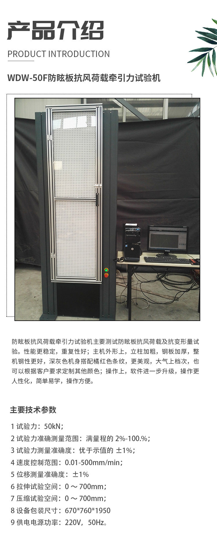 防眩板抗風(fēng)荷載試驗(yàn)機(jī) ? 防眩板整體力學(xué)性能牽引力試驗(yàn)機(jī)