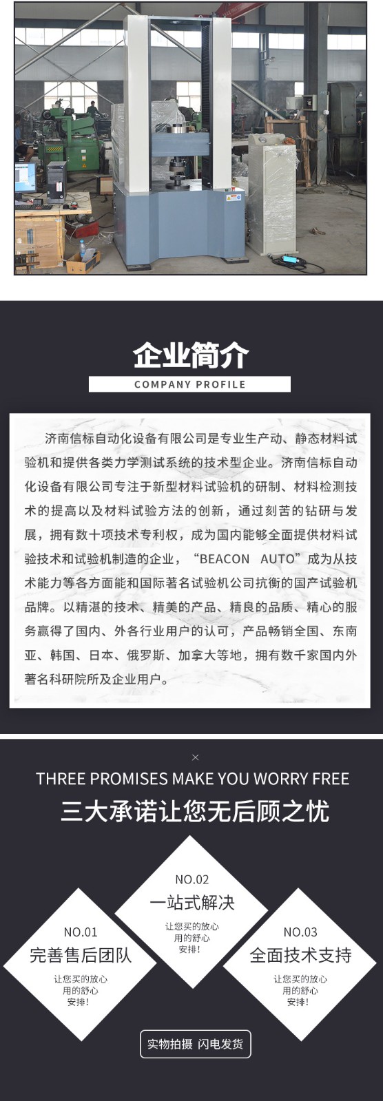 濟南信標(biāo)自動化設(shè)備有限公司主要生產(chǎn):動靜態(tài)萬能疲勞試驗機,接骨板彎曲試驗機,縫合線拉伸疲勞試驗機,髖膝關(guān)節(jié)磨損試驗機,電子萬能試驗機、液壓萬能試驗機、巖石三軸、四軸,電液拉力試驗機,材料試驗機,高低溫蠕變,高低頻疲勞,拉伸、扭轉(zhuǎn)、杯突等二十多個系列兩千多個的品種。