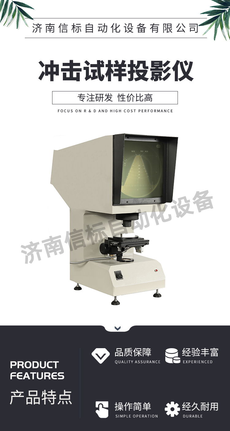 應(yīng)用領(lǐng)域 CST-50型沖擊試樣缺口投影儀是我們根據(jù)目前國(guó)內(nèi)廣大用戶的實(shí)際需求和GB/T229-2020《金屬夏比擺錘沖擊試驗(yàn)方法》中對(duì)沖擊試樣缺口的要求而設(shè)計(jì)、開(kāi)發(fā)的一種專用于檢查夏比V型和U型沖擊試樣缺口加工質(zhì)量的專用光學(xué)儀器,該儀器是利用光學(xué)投影方法將被測(cè)的沖擊試樣V或U型缺口輪廓放大投射到投影屏上,與投影屏上沖擊試樣V和U型缺口標(biāo)準(zhǔn)樣板圖比對(duì),以確定被檢測(cè)的沖擊試樣缺口加工是否合格,其優(yōu)點(diǎn)是操作簡(jiǎn)便,檢查對(duì)比直觀,效率高。 三、主要技術(shù)指標(biāo): 1、投影屏直徑 :200*200mm 2、工作臺(tái)尺寸 : 方工作臺(tái)尺寸:110×125mm 方工作臺(tái)直徑:90mm 工作臺(tái)玻璃直徑:70mm 3、工作臺(tái)行程 : 縱向:±10mm 橫向:±10mm 升降:±12mm 4、工作臺(tái)轉(zhuǎn)動(dòng)范圍: 0~360° 5、儀器放大倍率:50X 物鏡放大倍率: 2.5X 投影物鏡放大倍率:20x 6、光源(鹵鎢燈):12V 100W 7、電源: 220V 50Hz 8、外形尺寸:515×224×603mm 9、重量: 20kg 四、設(shè)備主要配置: 1.CST-50投影儀主機(jī) 一臺(tái) 2.底座調(diào)整鈕 四個(gè) 3.電源線 一根 4.鹵鎢燈 二個(gè) 5.平板玻璃 一塊 五、工作條件 a、環(huán)境溫度0-25oC范圍內(nèi); b、相對(duì)濕度不大于85 %; c、周圍無(wú)腐蝕性介質(zhì)的環(huán)境中; d、安裝在平整的地面上; a、環(huán)境溫度0-25oC范圍內(nèi); b、相對(duì)濕度不大于85 %; c、周圍無(wú)腐蝕性介質(zhì)的環(huán)境中; d、安裝在平整的地面上;