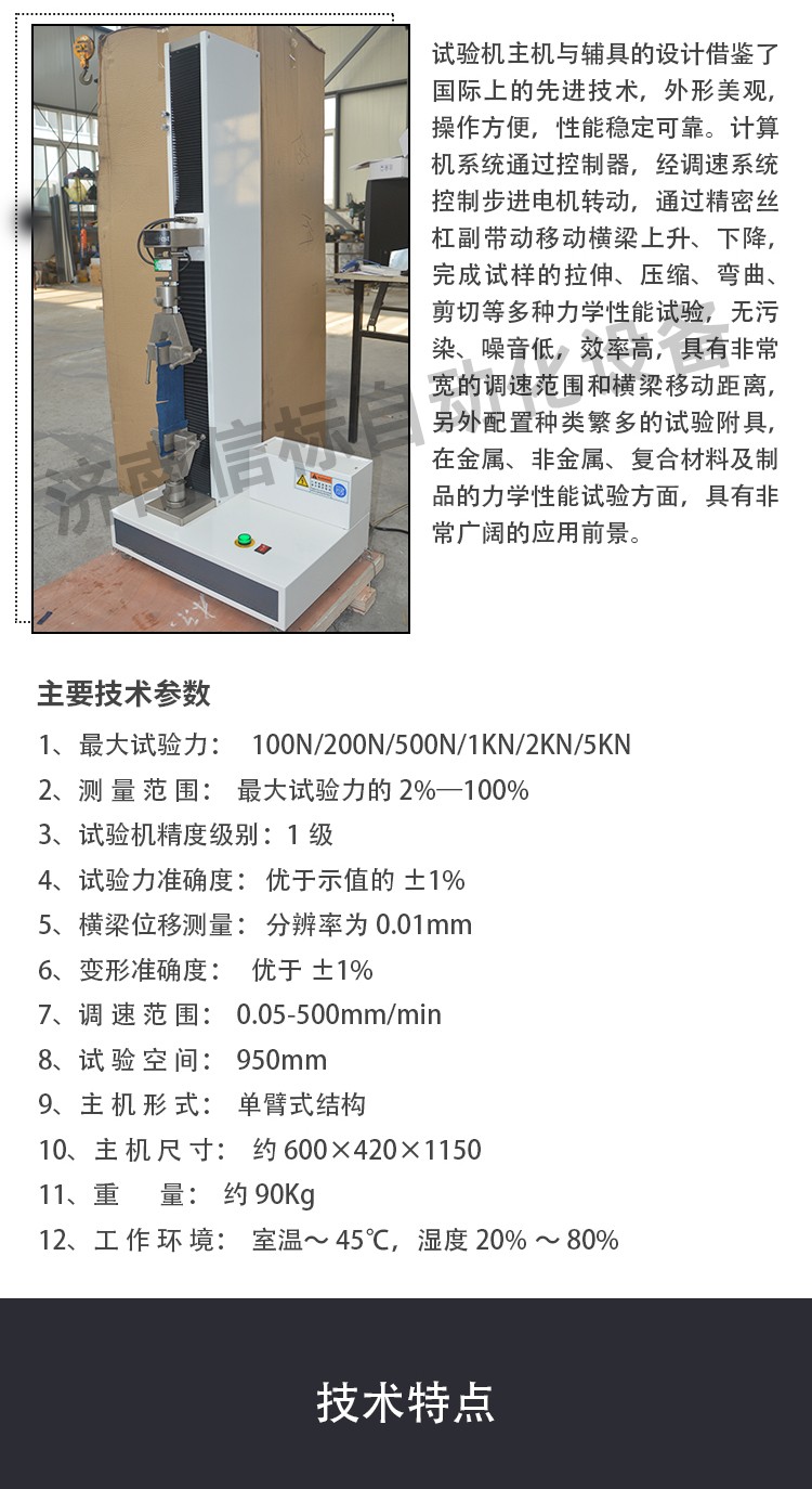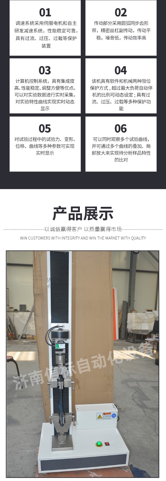 主要功能及特點(diǎn): 1、主機(jī): 1.1調(diào)速系統(tǒng)采用伺服電機(jī)和自主研發(fā)減速系統(tǒng),性能穩(wěn)定可靠,具有過流、過壓、過載等保護(hù)裝置。調(diào)速范圍可達(dá)0.05~500mm/min。 1.2傳動部分采用圓弧同步齒形帶,精密絲杠副傳動,傳動平穩(wěn),噪音低,傳動效率高。 1.3萬向節(jié)采用十字插銷結(jié)構(gòu),而且具有擺角限制功能,一方面便于試樣夾持,保證試驗同心度,另一方面很好的消除了不規(guī)則試樣對傳感器的影響。 2、控制系統(tǒng)、操作軟件及數(shù)據(jù)處理系統(tǒng) 2.1計算機(jī)控制系統(tǒng),具有集成度高、性能穩(wěn)定、調(diào)整方便等優(yōu)點(diǎn)??梢詫?shí)驗數(shù)據(jù)進(jìn)行實(shí)時采集,對實(shí)驗特性曲線實(shí)現(xiàn)實(shí)時動態(tài)顯示,試驗數(shù)據(jù)文件能以Access常用數(shù)據(jù)庫或SQLserve大型數(shù)據(jù)庫的方式保存,方便實(shí)現(xiàn)客戶的資源共享及網(wǎng)絡(luò)管理,以及用戶的再分析。對于用戶自定義的各種word2000報表,該軟件可輕松實(shí)現(xiàn)訪問,解決了不同用戶或同一用戶在不同時期對試驗報表有不同需要的難題。該軟件可處理試驗力、位移、 時間、變形的原始數(shù)據(jù)及由此派生的曲線。 2.2保護(hù)功能:該機(jī)具有軟件和機(jī)械兩種限位保護(hù)方式,超過最大負(fù)荷自動停機(jī)的比例可動態(tài)設(shè)定;具有過流、過壓、過載等多種保護(hù)功能。 2.3對于負(fù)荷、變形通道可實(shí)現(xiàn)自動標(biāo)示,直觀方便。 2.4批量試驗可實(shí)現(xiàn)曲線的分層次顯示,曲線自動跟隨。 2.5該軟件可實(shí)現(xiàn)用戶自定義的速度設(shè)定,速度的計算機(jī)調(diào)整。還可實(shí)現(xiàn)高精度的速度標(biāo)定,隨時調(diào)整速度檔位和編碼。
