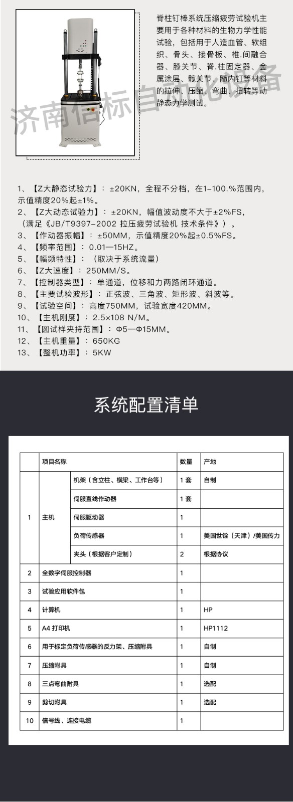 韌帶假體載荷疲勞試驗機技術參數(shù)
