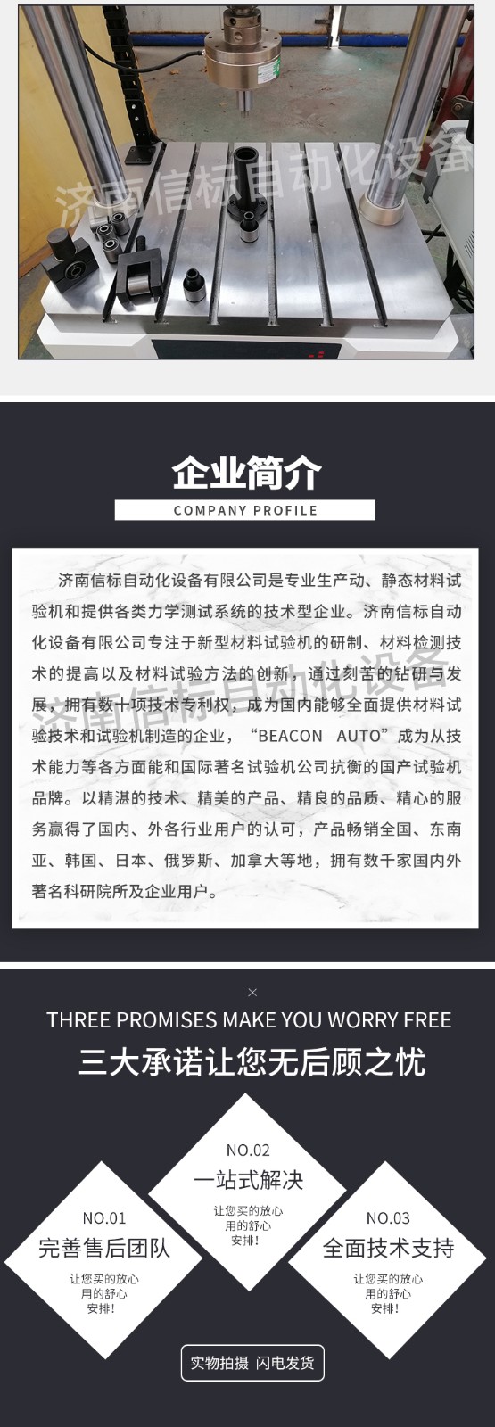| 濟(jì)南信標(biāo)自動(dòng)化設(shè)備有限公司主要生產(chǎn):動(dòng)靜態(tài)萬(wàn)能疲勞試驗(yàn)機(jī),接骨板彎曲試驗(yàn)機(jī),縫合線拉伸疲勞試驗(yàn)機(jī),髖膝關(guān)節(jié)磨損試驗(yàn)機(jī),電子萬(wàn)能試驗(yàn)機(jī)、液壓萬(wàn)能試驗(yàn)機(jī)、巖石三軸、四軸,電液拉力試驗(yàn)機(jī),材料試驗(yàn)機(jī),高低溫蠕變,高低頻疲勞,拉伸、扭轉(zhuǎn)、杯突等二十多個(gè)系列兩千多個(gè)的品種。 |