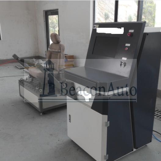 汽車座椅調(diào)角器耐久疲勞試驗(yàn)臺(tái) 1、概述 汽車座椅調(diào)角器耐久疲勞試驗(yàn)臺(tái)設(shè)備用于測試座椅調(diào)角器工作耐久性,調(diào)角器沖擊耐久性,回位力矩。 本試驗(yàn)臺(tái)結(jié)構(gòu)簡單,性能穩(wěn)定,操作方便,安全可靠,采用自動(dòng)加力、自動(dòng)計(jì)時(shí),多項(xiàng)目耐久測試,到達(dá)設(shè)定試驗(yàn)時(shí)間后自動(dòng)停止測試,自動(dòng)記錄試驗(yàn)數(shù)據(jù),并繪制曲線等功能。 特別聲明: l 本簡介概述不能作為向本公司提出任何要求的依據(jù) l 本公司保留對(duì)本簡介概述的解釋權(quán) l 本公司保留在滿足客戶要求的基礎(chǔ)上變更設(shè)計(jì)的權(quán)利 l 該設(shè)備的制造嚴(yán)格按照國家標(biāo)準(zhǔn)進(jìn)行。本方案的制訂僅代表我公司能制造該設(shè)備。為保證客戶方和我公司的的信息保密,雙方需要妥善保存及處理好相對(duì)應(yīng)的技術(shù)資料或提供的試驗(yàn)標(biāo)準(zhǔn)。在未經(jīng)雙方同意時(shí),所涉及的技術(shù)資料及試驗(yàn)標(biāo)準(zhǔn)嚴(yán)防外泄。 2、依據(jù)標(biāo)準(zhǔn) ? QC/T 844-2011 《乘用車座椅用調(diào)角器技術(shù)條件》 ? JT/T 460-2005 《客車座椅靠背調(diào)角器技術(shù)條件》 3、 型號(hào)說明 TJNJ-02-------------汽車座椅調(diào)角器耐久性能試驗(yàn)臺(tái) 4、 試驗(yàn)項(xiàng)目 座椅調(diào)角器工作耐久性 5、汽車座椅調(diào)角器耐久疲勞試驗(yàn)臺(tái)主要參數(shù) 4.1拉壓力傳感器:250N,精度0.2% 4.2擺臂轉(zhuǎn)動(dòng)角速度:0.87-3.49rad(10)/s; 4.3轉(zhuǎn)動(dòng)角度:±90°(以垂直地面為0°);調(diào)角器解鎖行程:0-100mm ; 4.4轉(zhuǎn)動(dòng)頻率:0-10次/分鐘 ;帶鎖0-5次/分鐘(中間開鎖位置越多越慢); 4.5工作電壓功率:380V,2.5Kw,恒壓干燥氣源輸出≤0.8MPa 4.6可對(duì)試驗(yàn)過程中的力值及行程等參數(shù)進(jìn)行實(shí)時(shí)監(jiān)控及試驗(yàn)過程中的數(shù)據(jù)保存,并可出據(jù)試驗(yàn)報(bào)告 5、汽車座椅調(diào)角器耐久疲勞試驗(yàn)臺(tái)性能特點(diǎn) 5.1本設(shè)備融合國家座椅相關(guān)標(biāo)準(zhǔn)內(nèi)容,結(jié)合客戶企業(yè)相關(guān)標(biāo)準(zhǔn)進(jìn)行增加改進(jìn)。本試驗(yàn)臺(tái)采用易裝夾式結(jié)構(gòu),采用框架結(jié)構(gòu)及鈑金噴塑殼體,結(jié)構(gòu)穩(wěn)定,適用于各種不同種類的座椅總成的手動(dòng)調(diào)角器以及類似產(chǎn)品進(jìn)行動(dòng)作疲勞測試; 5.2擺動(dòng)部分采用伺服電機(jī)搭配行星減速機(jī)作為動(dòng)作執(zhí)行源,伺服電機(jī)的優(yōu)點(diǎn)是位置及角度控制較好,搭配減速機(jī)將擺動(dòng)速度降低,將擺動(dòng)扭矩升高; 5.3擺臂中心與座椅調(diào)角器中心不同心問題,圓周運(yùn)動(dòng)時(shí)對(duì)應(yīng)線性容易造成卡滯,我們經(jīng)過反復(fù)研討,確定運(yùn)用雙光軸定位,雙滾珠軸承螺母導(dǎo)向,調(diào)心軸承組連接使調(diào)軸不同心時(shí),對(duì)對(duì)應(yīng)線性進(jìn)行補(bǔ)償,達(dá)到圓周擺動(dòng)效果; 5.4可進(jìn)行自動(dòng)回彈式座椅的疲勞試驗(yàn)和非自動(dòng)回彈式座椅的疲勞試驗(yàn),可對(duì)自動(dòng)回彈式座椅是否回位進(jìn)行反饋; 5.5執(zhí)手開啟機(jī)構(gòu),實(shí)現(xiàn)機(jī)械限位與光電限位配合模式,防止開鎖力過大對(duì)整體機(jī)構(gòu)進(jìn)行過沖性破壞; 5.6可對(duì)轉(zhuǎn)動(dòng)實(shí)時(shí)扭矩進(jìn)行監(jiān)控,對(duì)極限值進(jìn)行采集并且記錄;