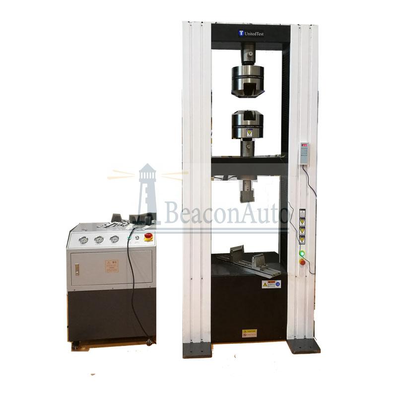 5噸安全帶破斷拉力(負(fù)荷)試驗(yàn)機(jī) 安全帶破斷拉力(負(fù)荷)試驗(yàn)機(jī)產(chǎn)品介紹: 安全帶破斷拉力(負(fù)荷)試驗(yàn)機(jī)主要用于測試道路車輛安全帶的破斷力、破斷負(fù)荷、拉力、抗拉強(qiáng)度、拉伸破壞、拉伸負(fù)荷、斷裂強(qiáng)度、斷裂延伸力、延伸率、伸長率等力學(xué)性能檢測。 安全帶破斷拉力(負(fù)荷)試驗(yàn)機(jī)安全帶破斷力試驗(yàn)機(jī)測試方法: 1、首先按下復(fù)位鍵使安全帶破斷力試驗(yàn)機(jī)上夾頭復(fù)位,當(dāng)達(dá)到復(fù)位狀態(tài)后電極停止運(yùn)轉(zhuǎn),按夾樣鍵安全帶破斷力試驗(yàn)機(jī)的上夾頭開始向上運(yùn)行移動(dòng)夾持長度當(dāng)上夾頭達(dá)到設(shè)定的夾持長度時(shí)電機(jī)停止運(yùn)轉(zhuǎn),夾持試樣,把事先處理好的安全帶放在上下兩夾頭之間然后使用鎖緊裝置固定好。 2、按下拉伸鍵安全帶破斷力試驗(yàn)機(jī)上夾頭向上運(yùn)行開始拉伸試樣此時(shí)力值和伸長瞬間清零由零開始逐漸上升,安全帶電子試驗(yàn)機(jī)動(dòng)態(tài)的變化量顯示在相應(yīng)的屏幕中當(dāng)力值達(dá)到該試樣的拉伸斷列大值時(shí)試樣被拉斷電機(jī)停止運(yùn)轉(zhuǎn),大力值和伸長量鎖定在力值和伸長顯示屏上。 3、電機(jī)判停后,系統(tǒng)等待10秒鐘后自動(dòng)復(fù)位,試驗(yàn)次數(shù)會(huì)自動(dòng)減一顯示在次數(shù)顯示屏上,在此時(shí)間內(nèi)如果用戶對本次試驗(yàn)數(shù)據(jù)不滿意可以按刪除鍵來刪除本次試驗(yàn),則該次試驗(yàn)取消,不影響總的試驗(yàn)次數(shù)。 4、當(dāng)下夾頭復(fù)位后,-次試驗(yàn)做完,再按夾樣鍵開始移動(dòng)夾持長度即重復(fù)2-3步驟直到做完設(shè)定次數(shù)此時(shí)次數(shù)顯示為零,按下打印鍵試驗(yàn)數(shù)據(jù)開始打印。 5、在沒按復(fù)位鍵之前試驗(yàn)數(shù)據(jù)可以再次打印,打印完后如需繼續(xù)做試驗(yàn)按下復(fù)位鍵系統(tǒng)恢復(fù)到上電狀態(tài),按夾樣鍵進(jìn)行下一組試驗(yàn)。 安全帶破斷拉力(負(fù)荷)試驗(yàn)機(jī)技術(shù)參數(shù): 試驗(yàn)機(jī)精度:1級 試驗(yàn)力測量范圍:0. 4%-100%FS 試驗(yàn)力準(zhǔn)確度:優(yōu)于士1% 位移分辨率:0. 001mm 位移測量準(zhǔn)確度:優(yōu)于土1% 試驗(yàn)速度范圍:0. 001-500mm/min 拉伸空間(不含夾具): 600mm 立柱間距:400mm 電機(jī)功率:0. 75KW 供電電源:220V, 50Hz 工作環(huán)境:室溫- 35℃相對濕度不超過80% 更多安全帶破斷拉力(負(fù)荷)試驗(yàn)機(jī)資料請電話聯(lián)系我們。